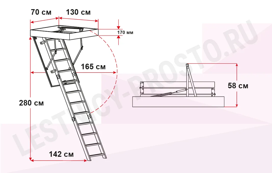 Высоту лестницы можно увеличить с помощью дополнительной секции до 3350 мм. (секция покупается отдельно)