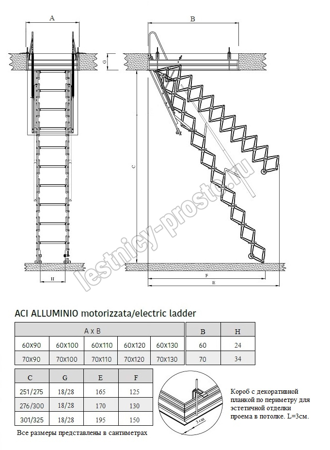 Чердачная лестница с электроприводом. Fantozziscale Motor Base 60×90 см