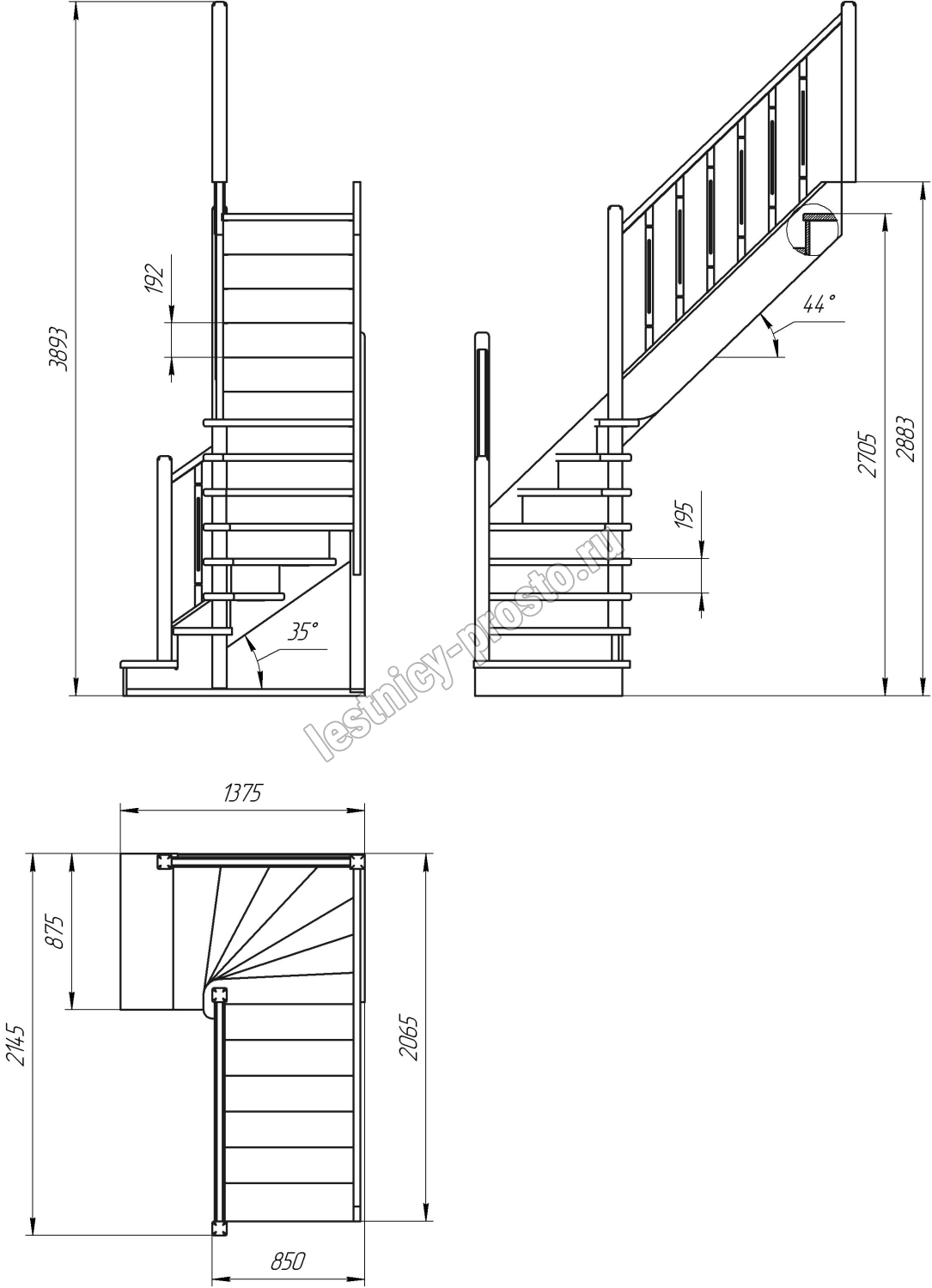 Деревянная межэтажная лестница ЛЕС-02, Сосна