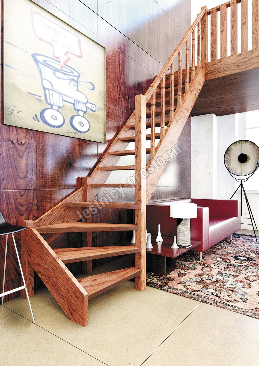 Деревянная межэтажная лестница ЛЕС-07 2693-2900 проем 2550-830, Сосна