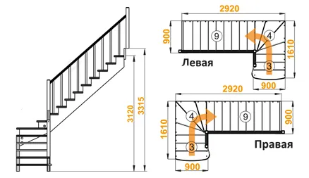 | Лестница из сосны К-001м/1 под покраску с подступёнками |