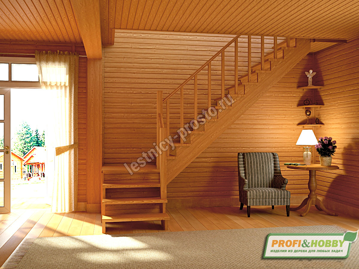 | Лестница из сосны К-002М/1 с подступёнками под покраску |