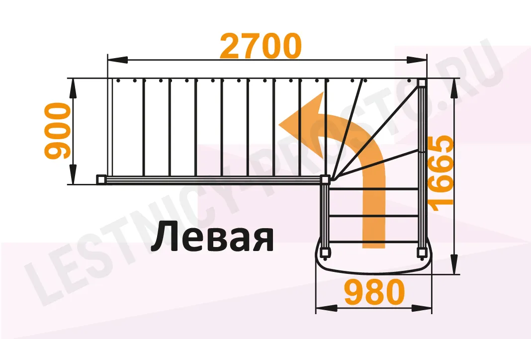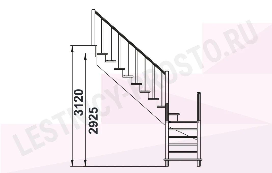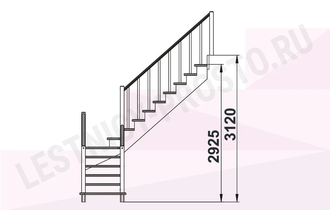 Базовый комплект включает в себя элементы лестницы и ограждения без какого-либо покрытия.