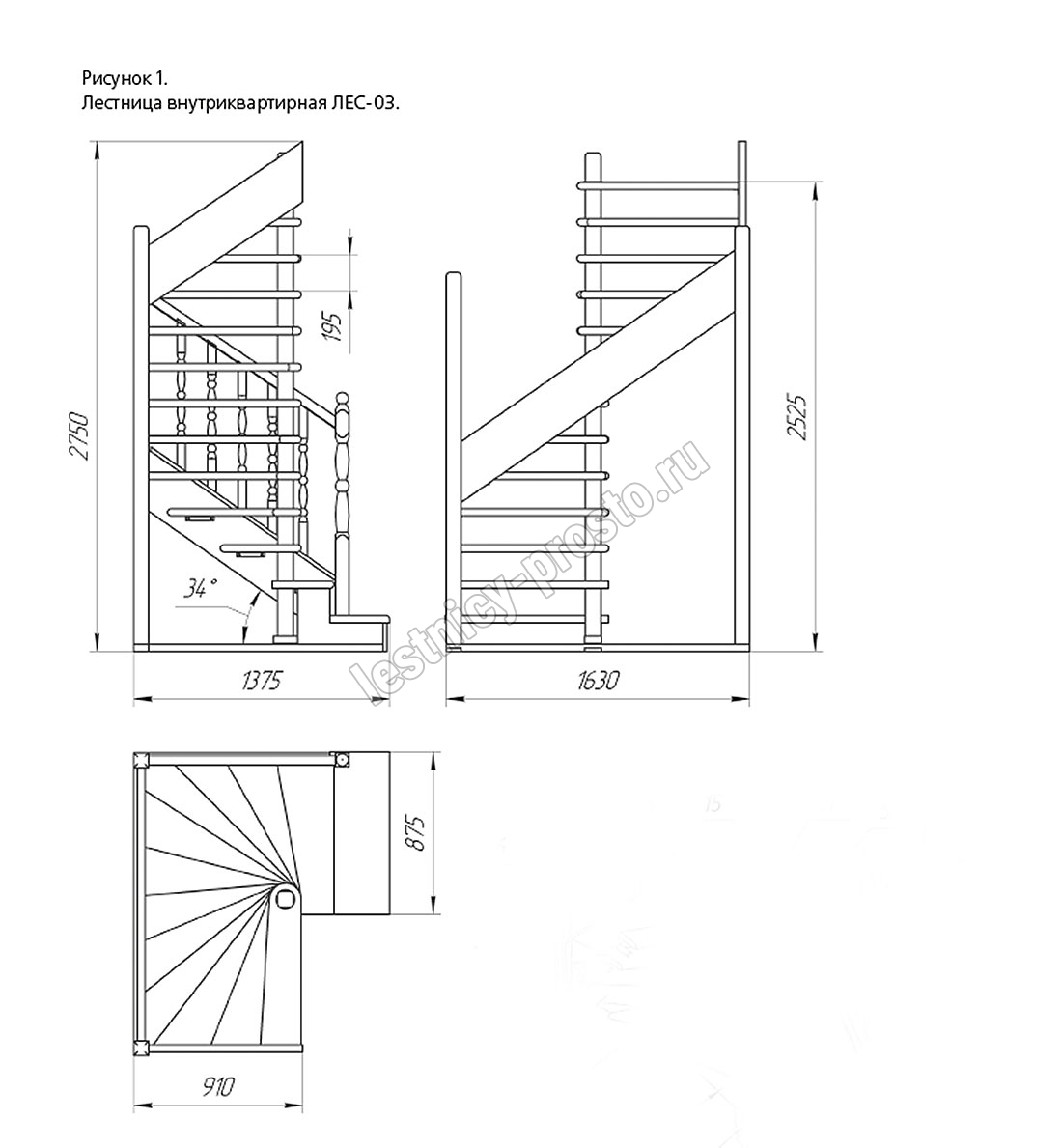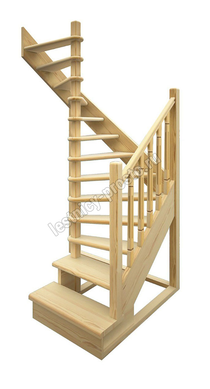 Базовый комплект включает в себя деревянные элементы лестницы и ограждения без какого-либо покрытия. Поставляется в разобранном виде, упакованная в ящик. Монтаж производится силами двух человек, в соответствии с указаниями, приведёнными в паспорте лестницы.