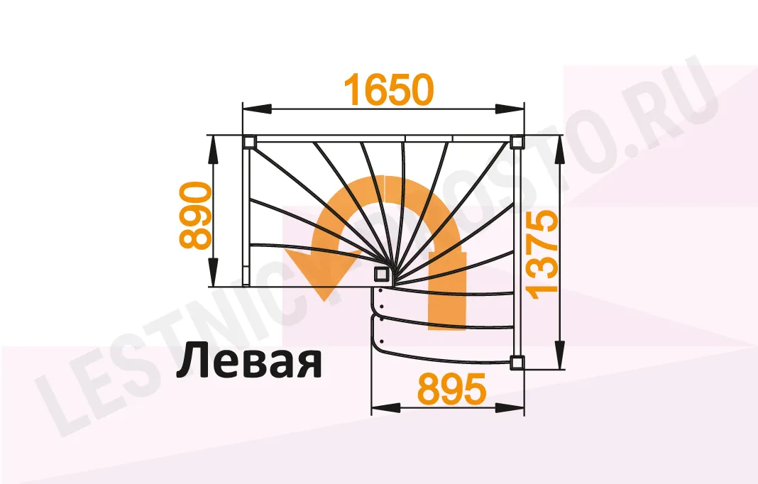 Схема лестницы ЛС-04М с поворотом налево