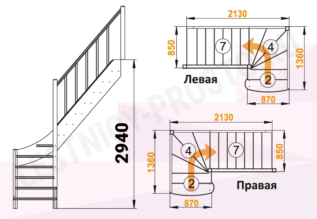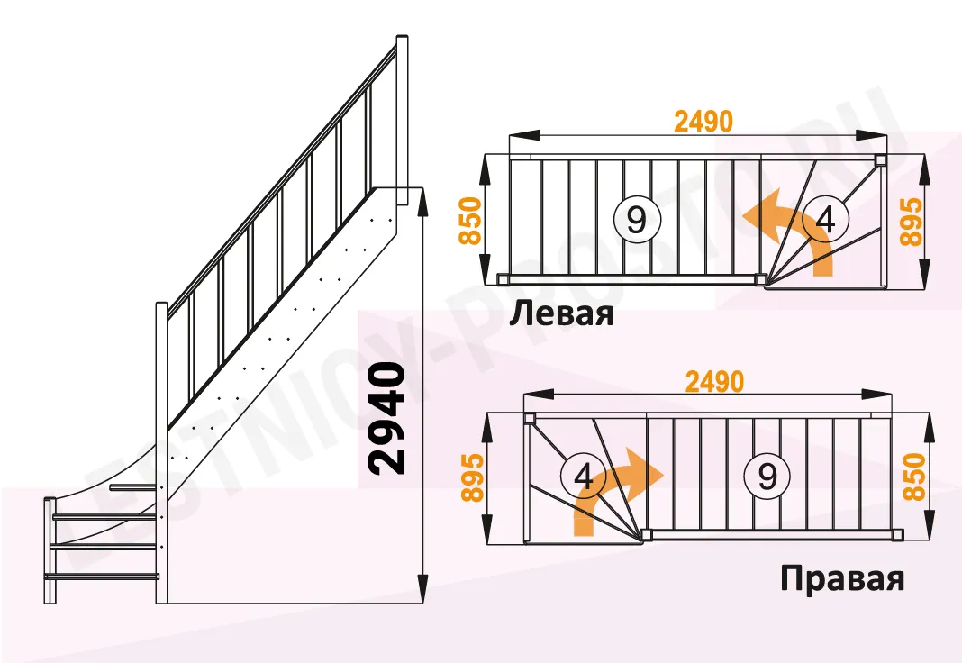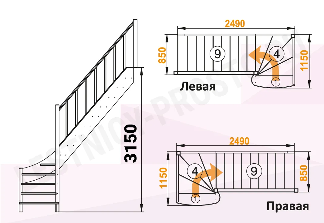 | Лестница из сосны ЛС-07М/4 под покраску |