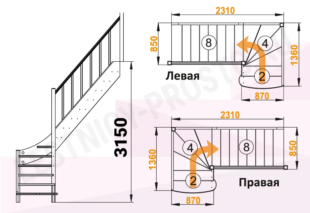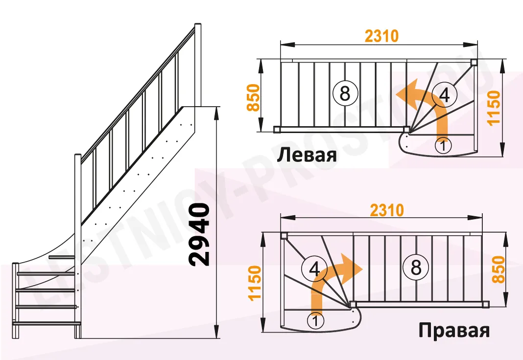 | Лестница из сосны ЛС-07М/4 с подступёнками под покраску |