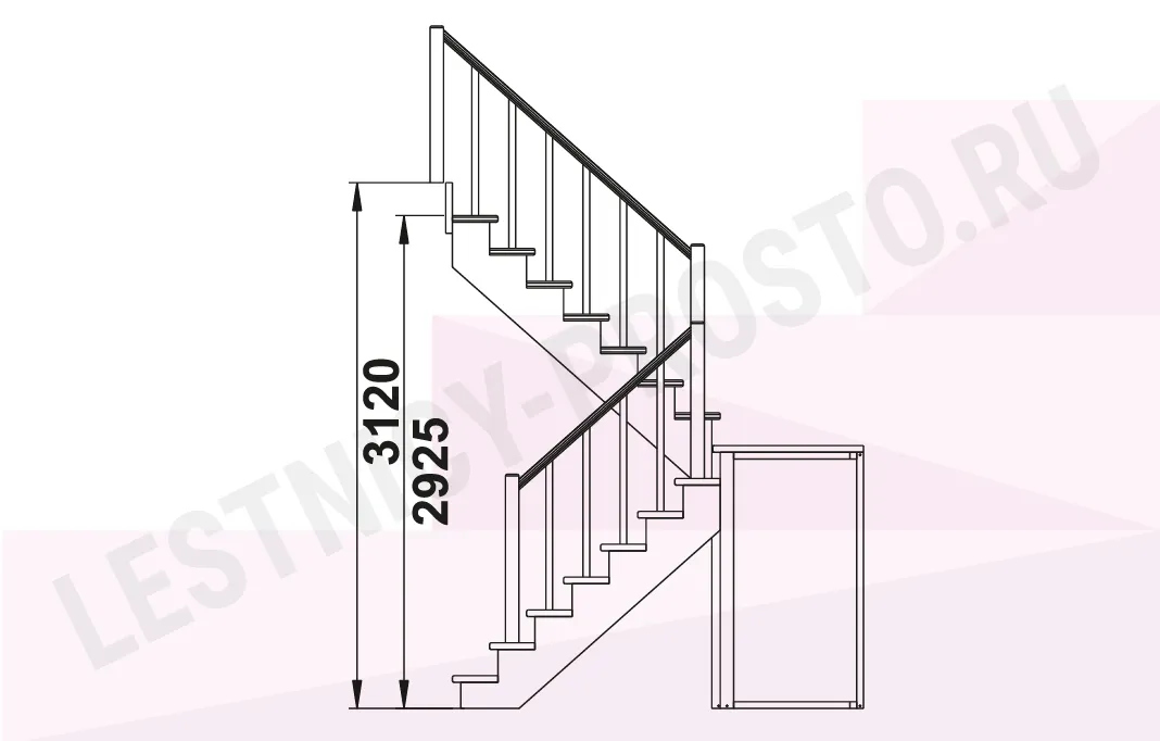 Схема лестницы К-004М/1 с поворотом налево