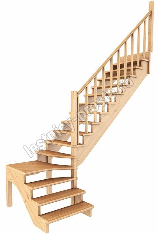 Базовый комплект включает в себя деревянные элементы лестницы и ограждения без какого-либо покрытия.