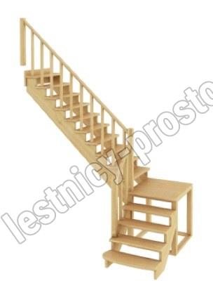 Ступени и поручень лестницы изготовлены из дуба, остальные элементы из сосны.