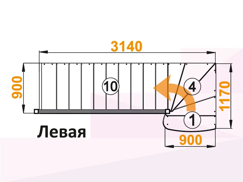 Лестница К-001М/8 с поворотом налево