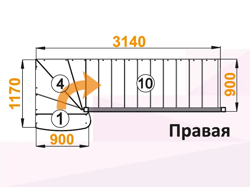 Лестница К-001М/8 с поворотом направо
