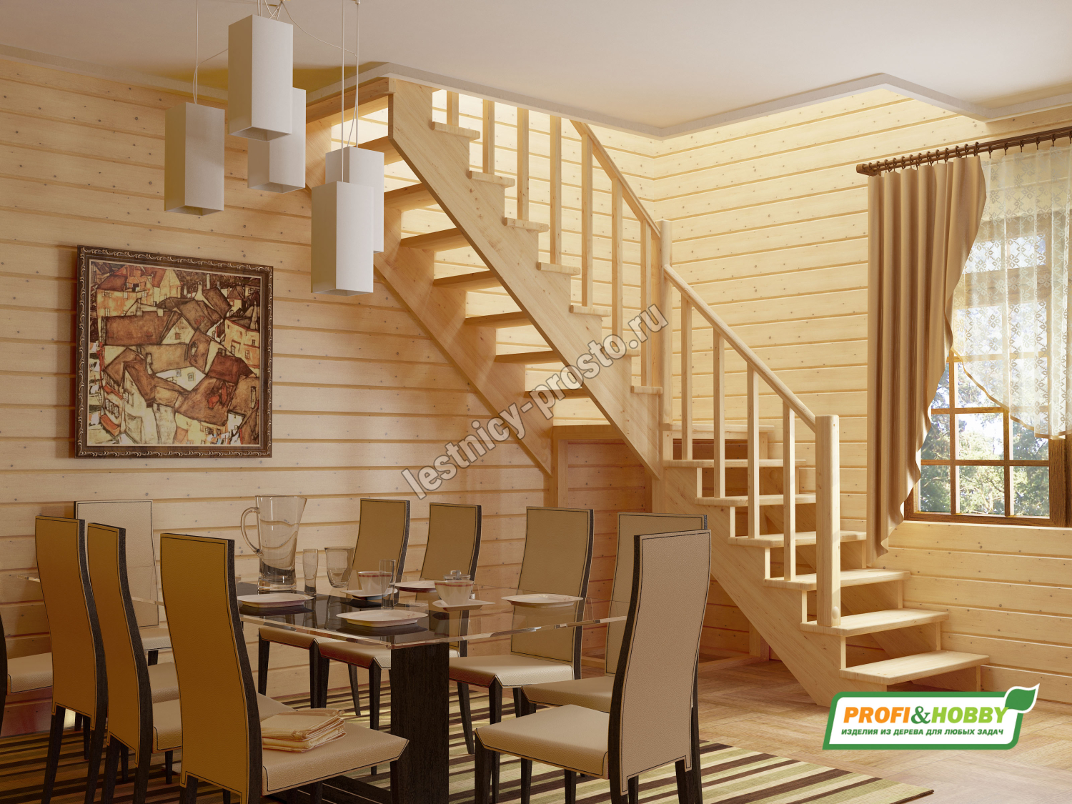 Базовый комплект включает в себя деревянные элементы лестницы и ограждения без какого-либо покрытия. Вы можете заказать у нас покраску лестницы в цвета, отвечающие особенностям вашего помещения. Вы можете собрать лестницу самостоятельно или заказать у нас доставку и монтаж.