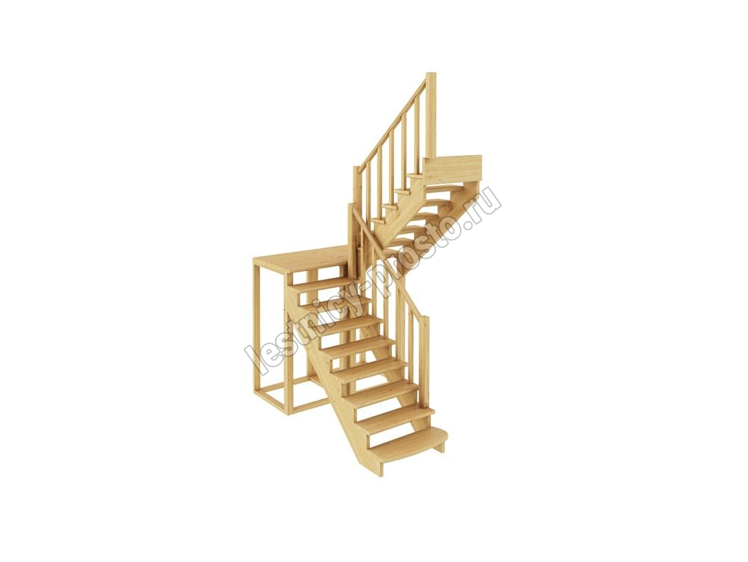 Лестница из сосны К-004М/2 с подступёнками под покраску