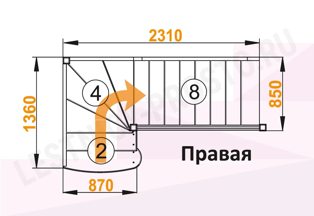 Базовый комплект включает в себя деревянные элементы лестницы с подступенками и ограждения без какого-либо покрытия.