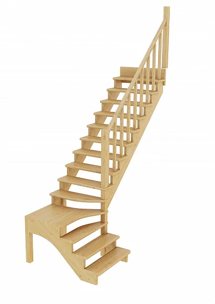Базовый комплект включает в себя деревянные элементы лестницы и ограждения без какого-либо покрытия.