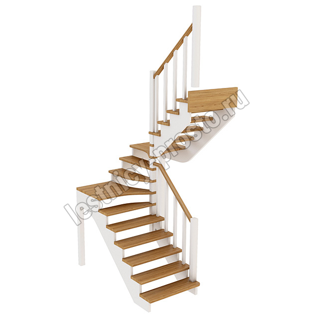 Ограждение лестницы с одной стороны. Базовый комплект включает в себя деревянные элементы лестницы и ограждения без какого-либо покрытия.
