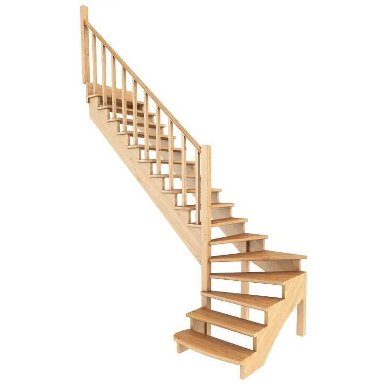 Базовый комплект включает в себя деревянные элементы лестницы и ограждения без какого-либо покрытия.