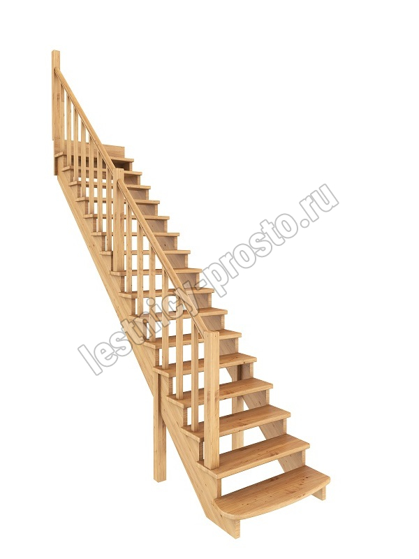 Лестница К-020у из сосны с подступёнками