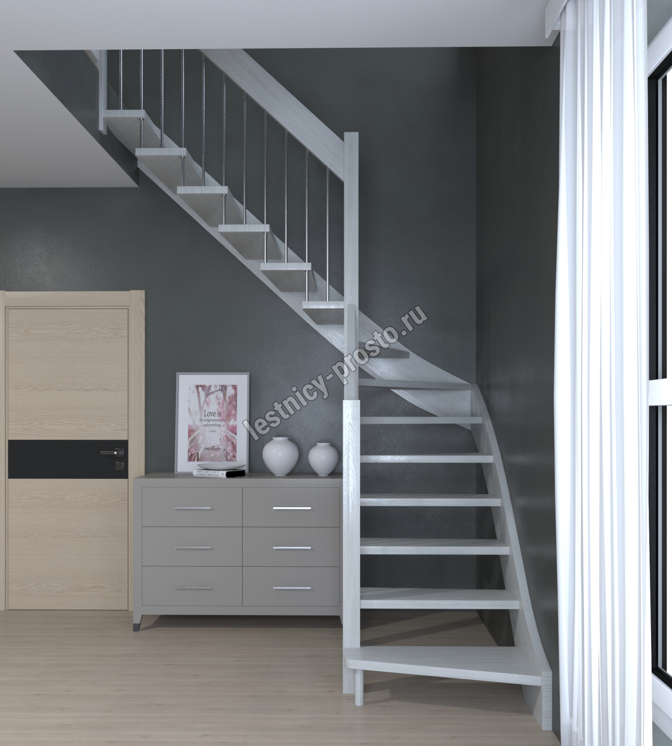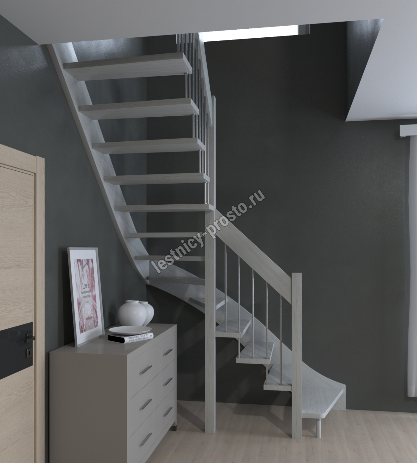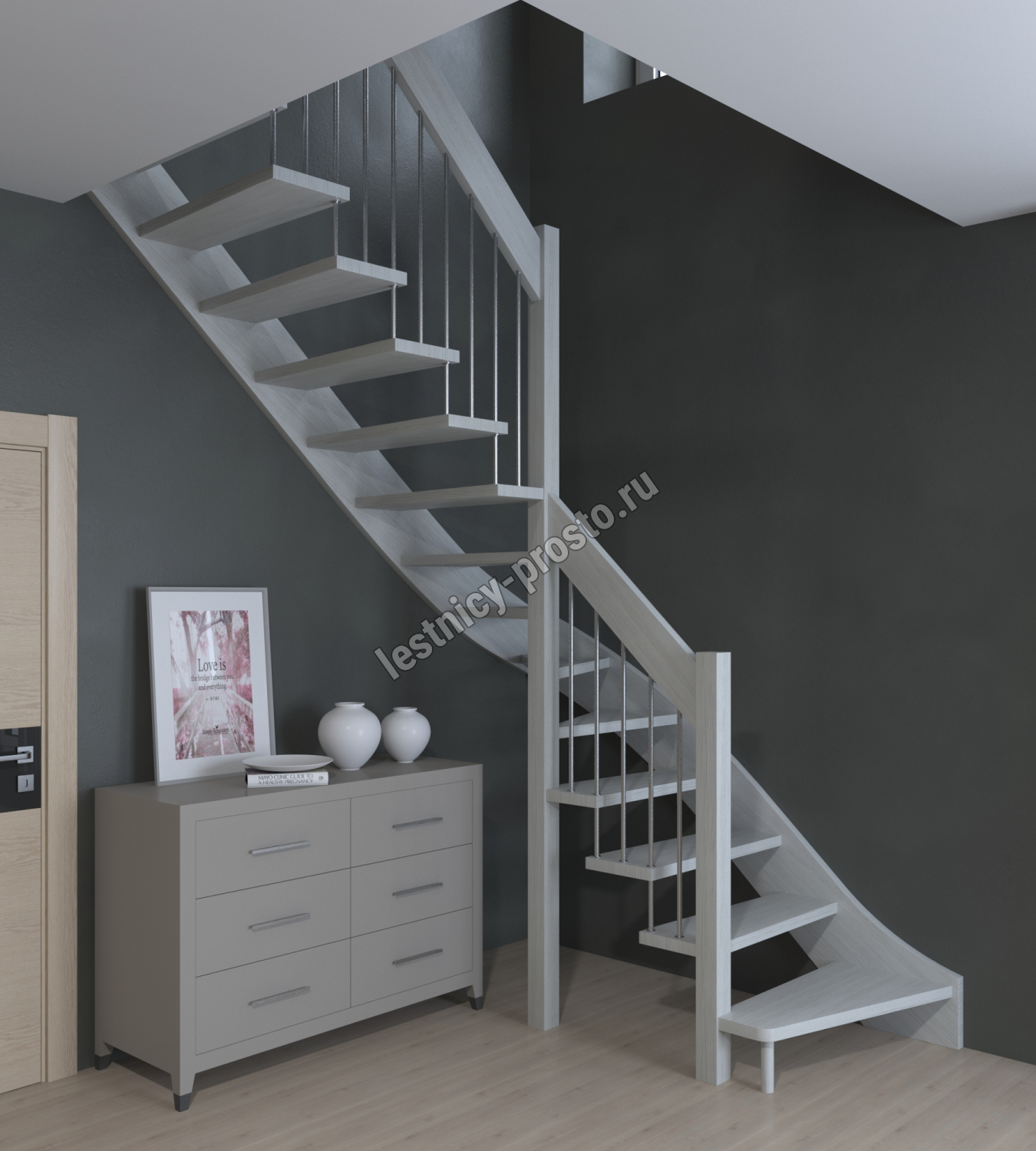 Лестница Prosto Console г-образная забежная дуб, h300 см
