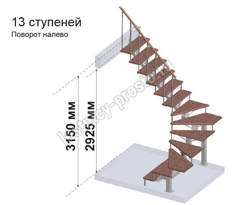 Комплект ограждений для П-образной лестницы MONO h315 из 13 ступеней.