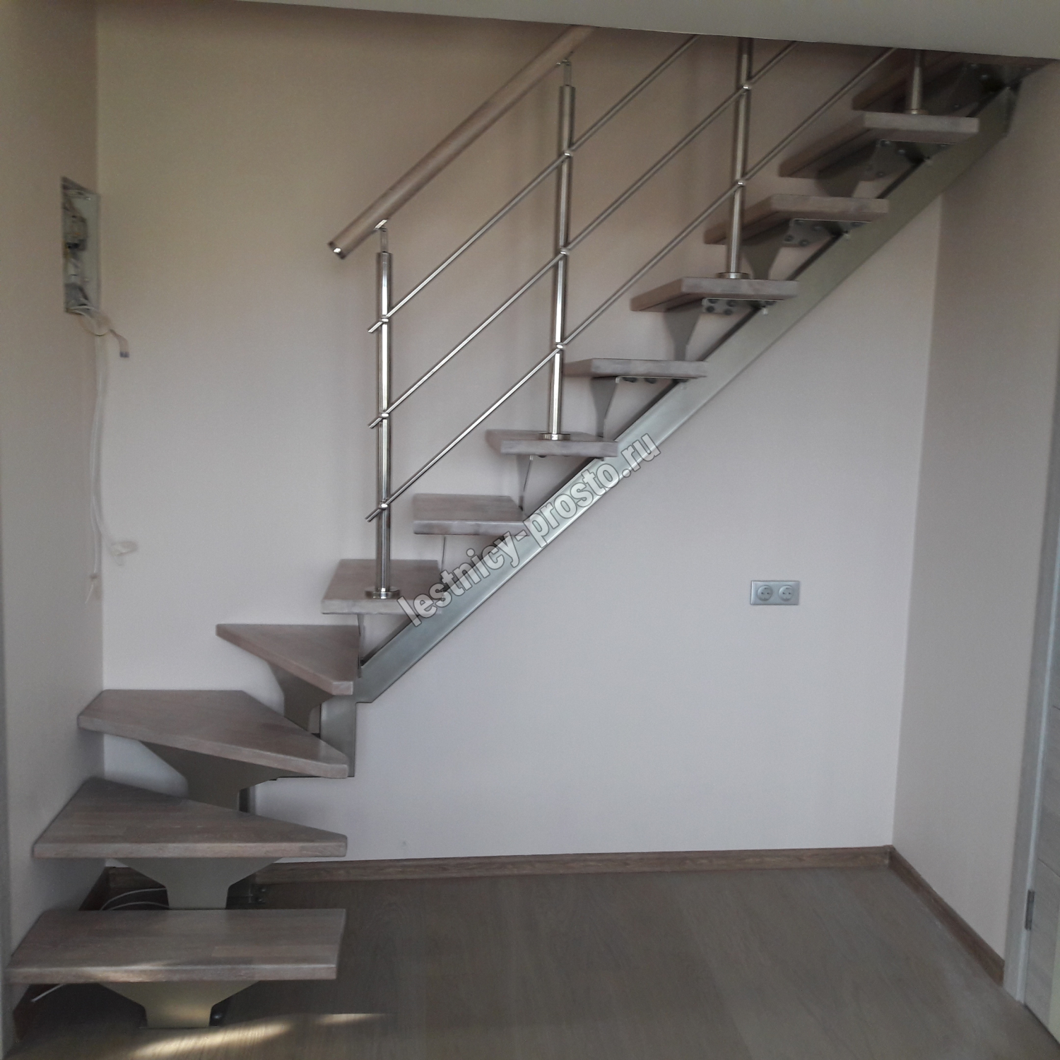 Комплект ограждений для П-образной лестницы PROSTO MONO из 8 ступеней.