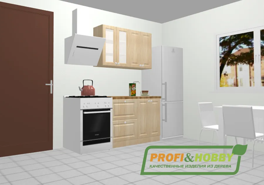 Кухня 1.2 х 2.32 м, массив сосны, бесцветный акриловый лак