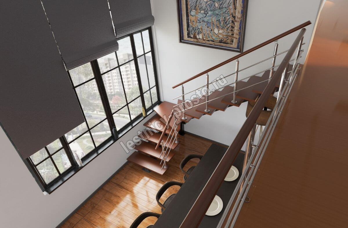 Лестница PROSTO MONO Г-образная h270 см, ступени бук