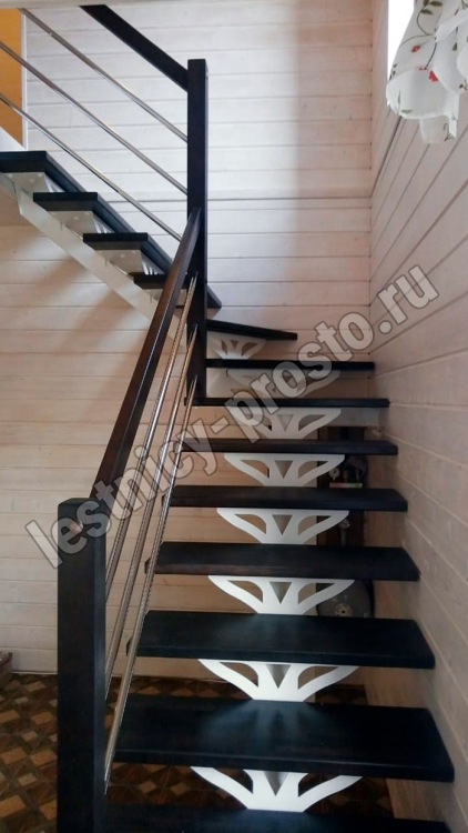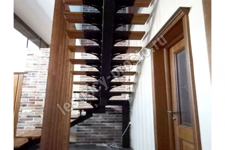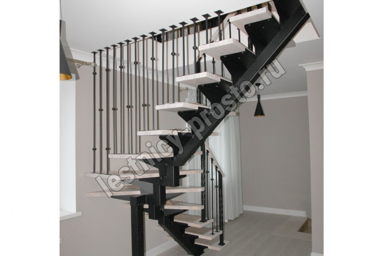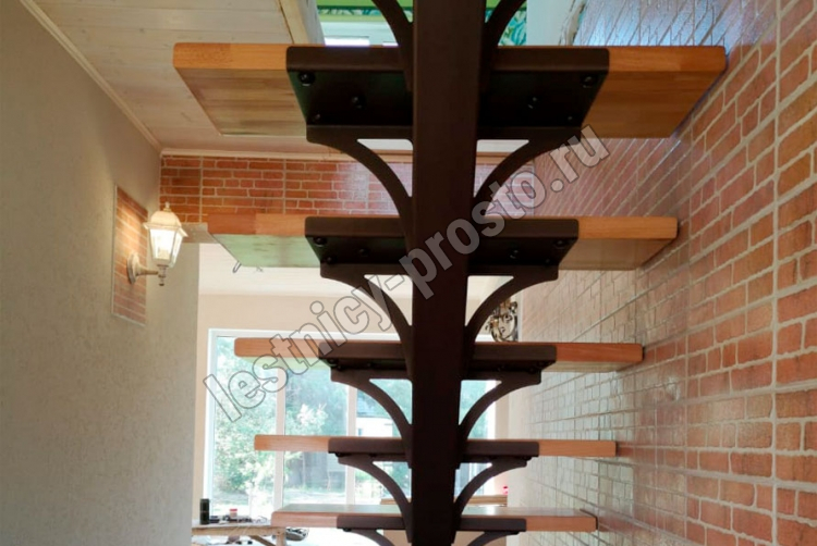 Основой лестницы служит цельносварной центральный косоур, который обеспечивает надёжную прочность конструкции и "парящий" дизайн, лестница с таким каркасом в интерьере смотрится легко и воздушно.