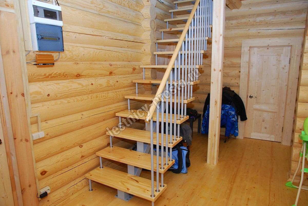 Ступени лестницы изготовлены из дерева категории А/В паркетной склейки без какого-либо покрытия. Вы можете заказать у нас предварительную профессиональную покраску деревянных элементов материалами БИОФА в широкий спектр цветов (стоимость зависит от количества ступеней).