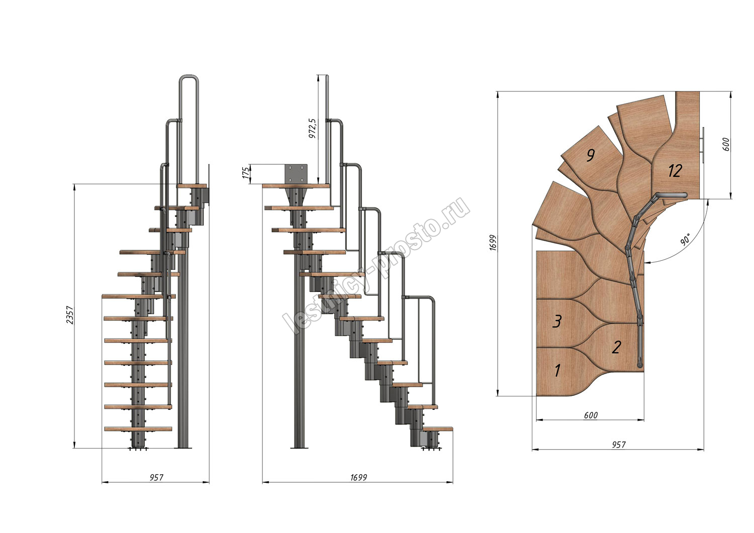 - Регулируемый по высоте в пределах 180-240 мм модуль. Большой диаметр и толщина металла деталей обеспечивают жесткость и прочность конструкции. Регулировка каждого модуля по высоте позволяет легко приспособить лестницу под ваше помещение.