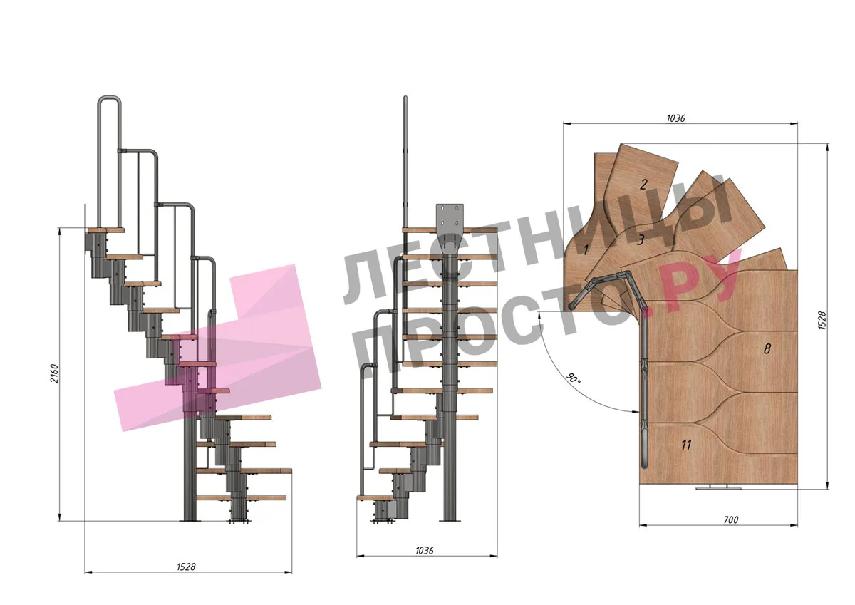 Высота лестницы 1980 - 2880 (11 ступеней) мм