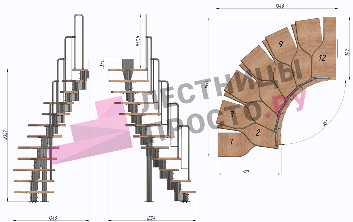 Высота лестницы 2160 - 3120 (12 ступеней) мм