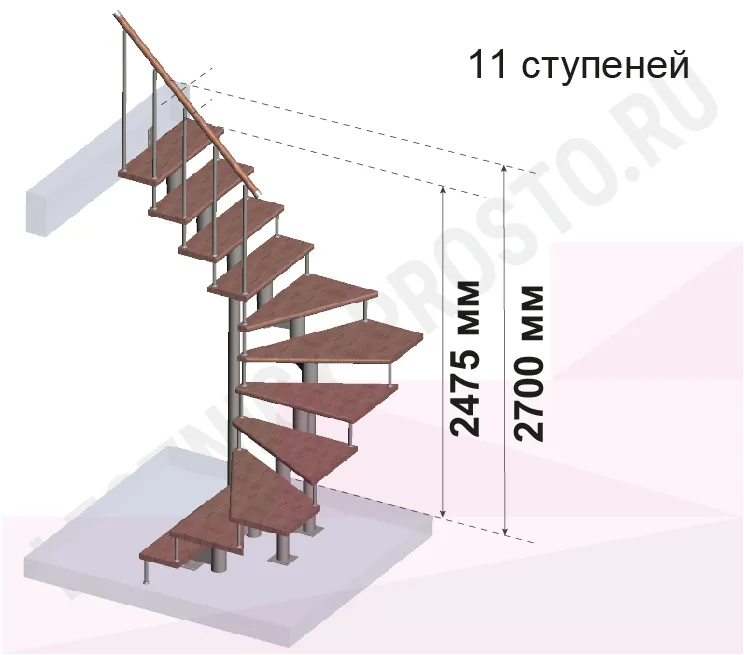 | Модульная лестница PROSTO MODULE п-образная, h270, лиственница |
