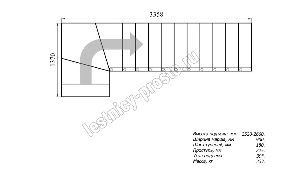 Модульная лестница Фаворит 180 2520-2660, Белый, Лиственница, Нержавеющая сталь