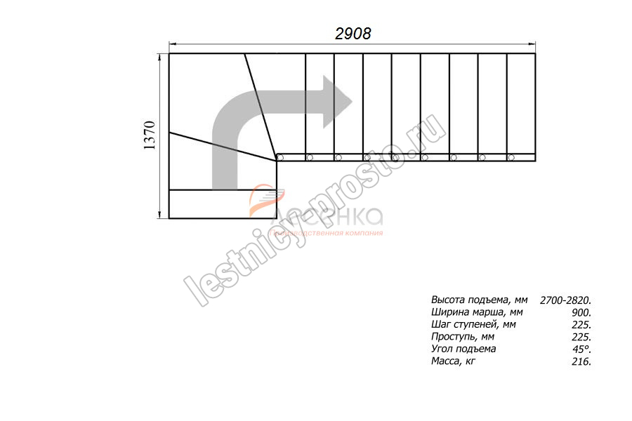 Модульная лестница Фаворит 225 2700-2820, Серый, Сосна, Крашеная