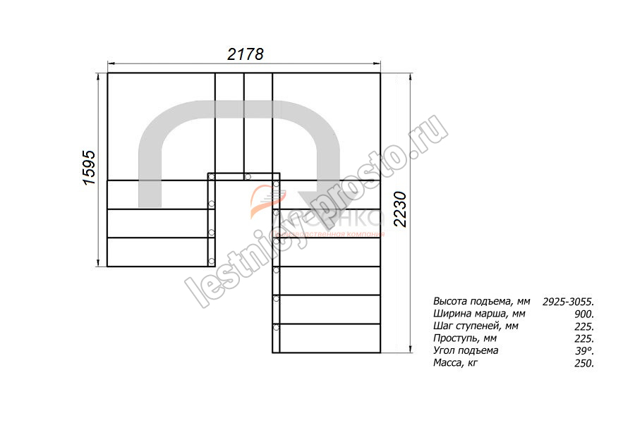 Модульная лестница Комфорт 225 2925-3055, Серый, Сосна, Крашеная