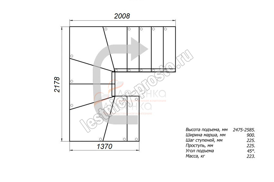 Модульная лестница Спринт 225 2475-2585, Черный, Сосна, Крашеная, Без Ступений