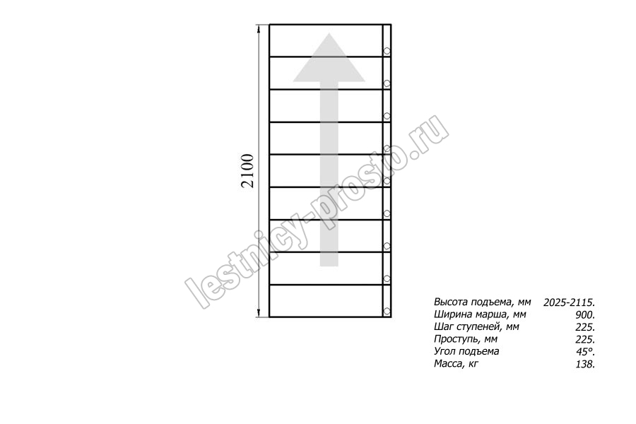 Модульная лестница Стандарт 2025-2115, Серый, Сосна, Крашеная, Без Ступений