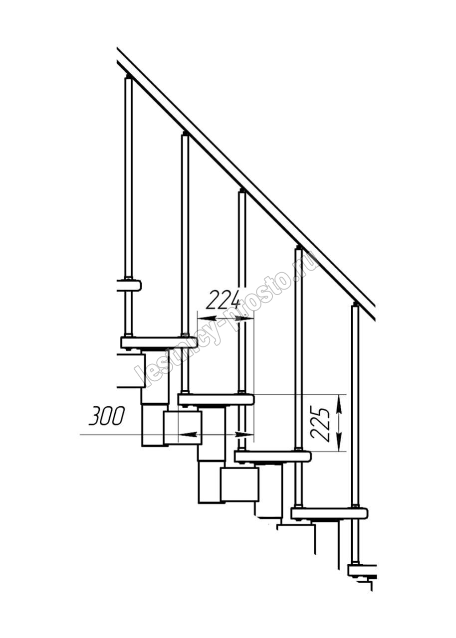 Модульная лестница Стандарт 2475-2585, Серый, Сосна, Крашеная, Без Ступений