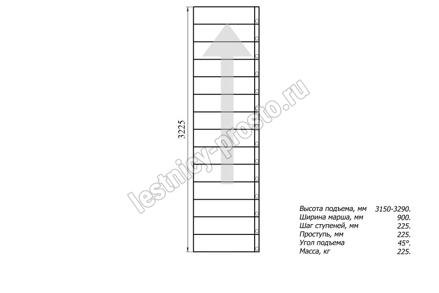 Модульная лестница Стандарт 3150-3290, Черный, Сосна, Крашеная, Без Ступений