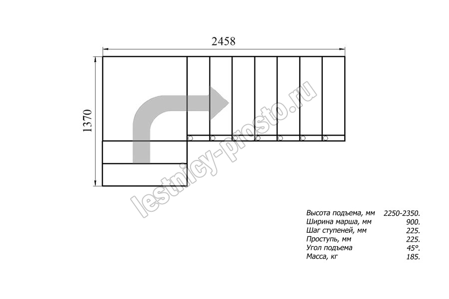 Модульная лестница Статус 225 2250-2350, Серый, Бук, Нержавеющая сталь