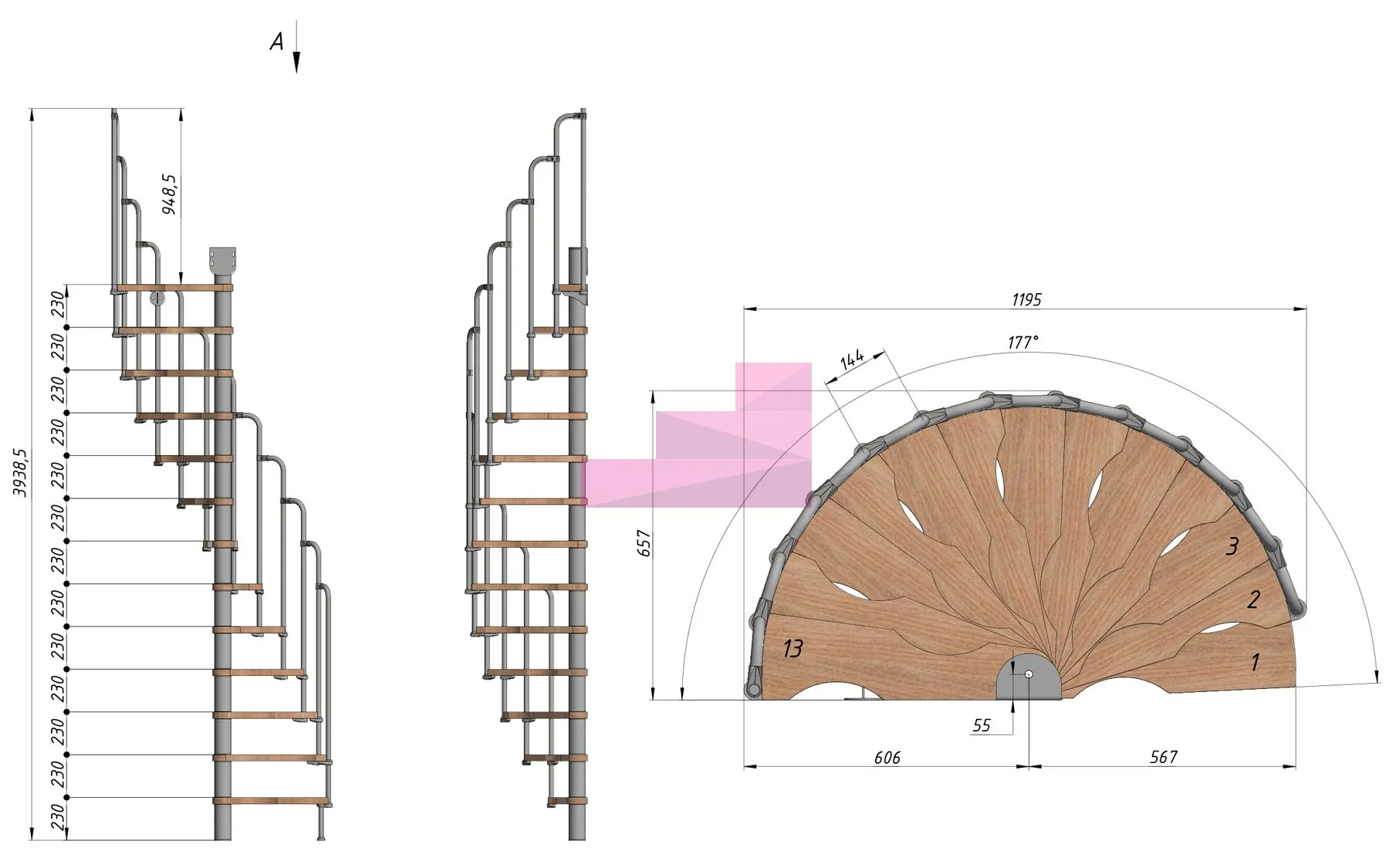 | Винтовая лестница PROSTO MINI 60×120 см, h322-345 см |