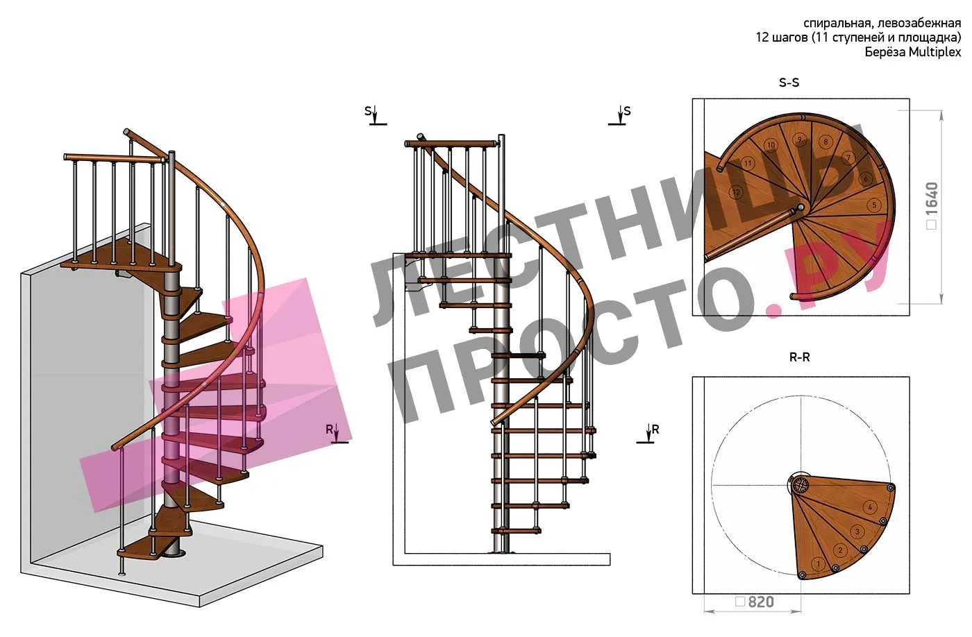 Винтовая лестница Prosto Spiral Black D160см, h275.7-313.9 см