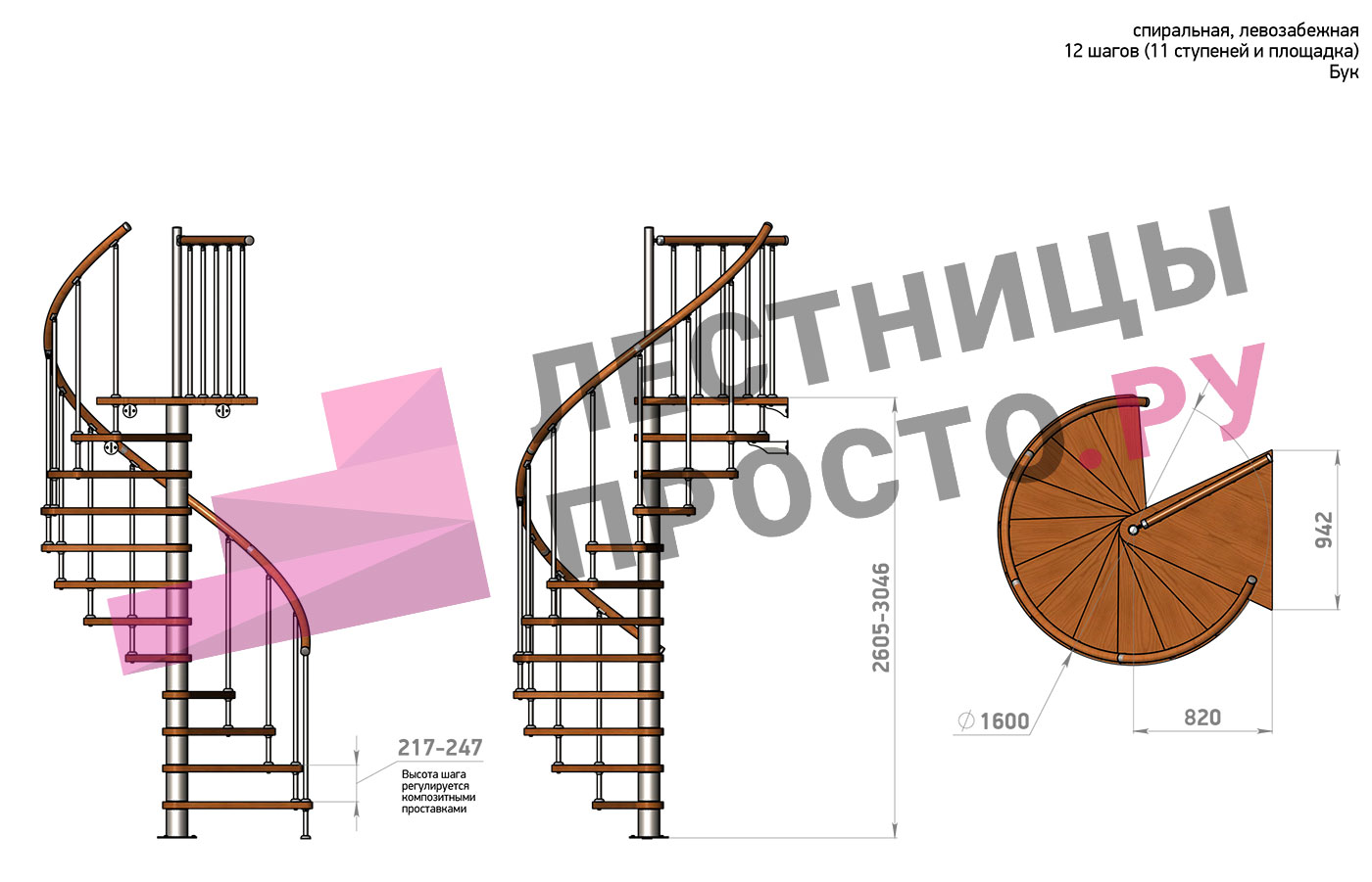 Правая, d=160см, 12 ступеней + площадка