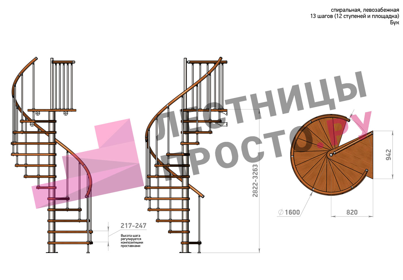 Левая, d=120см, 13 ступеней + площадка