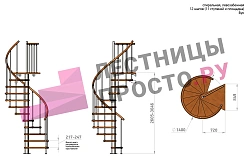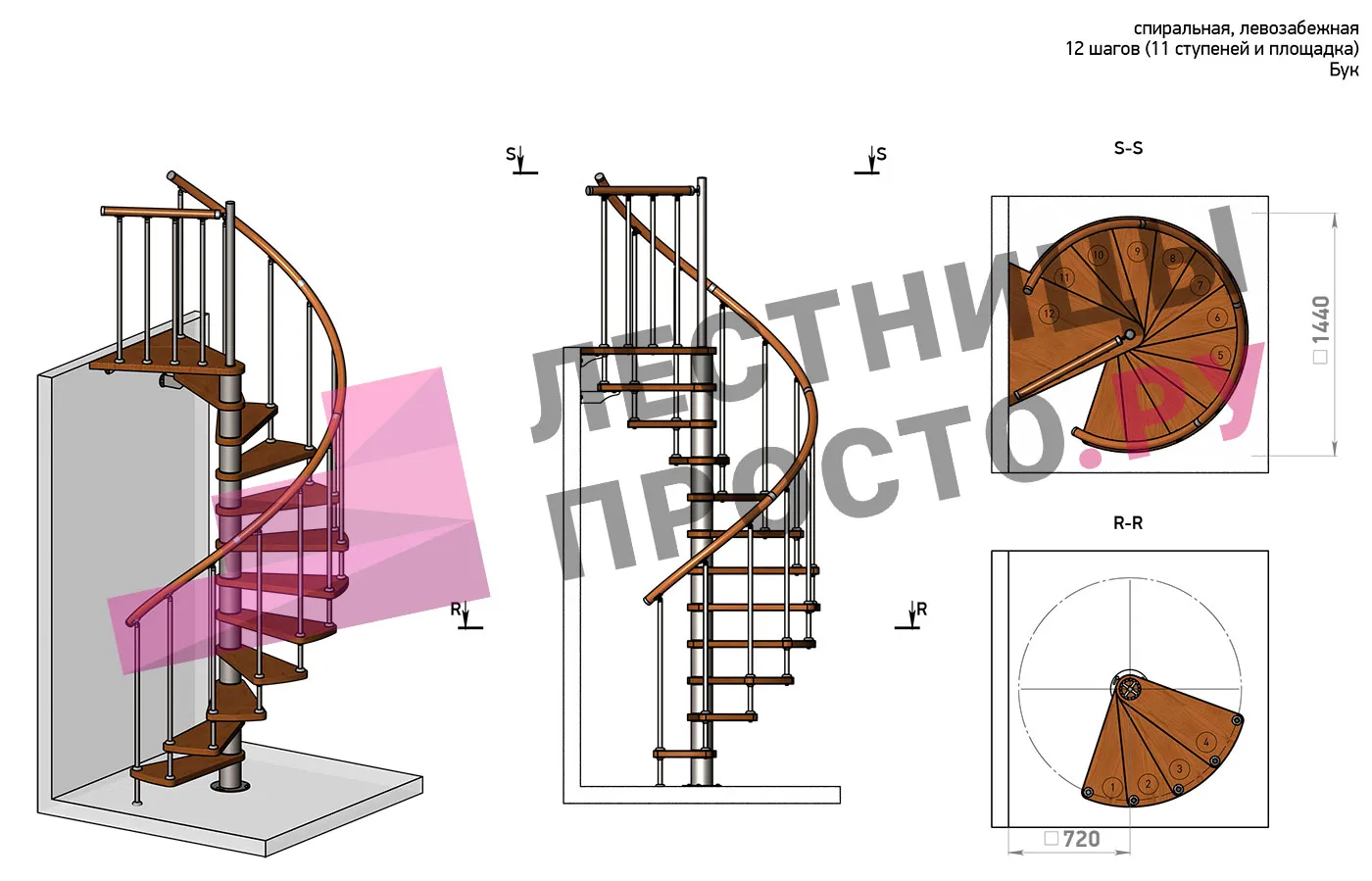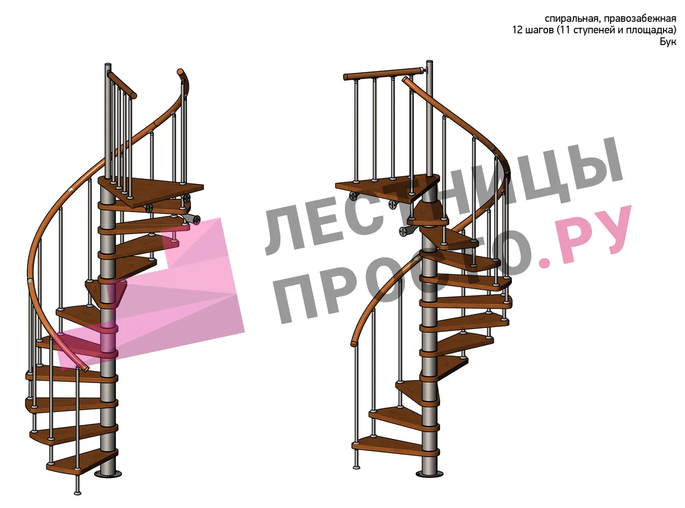 Ширина ступени между центральной колонной и поручнем ≈ 580 мм